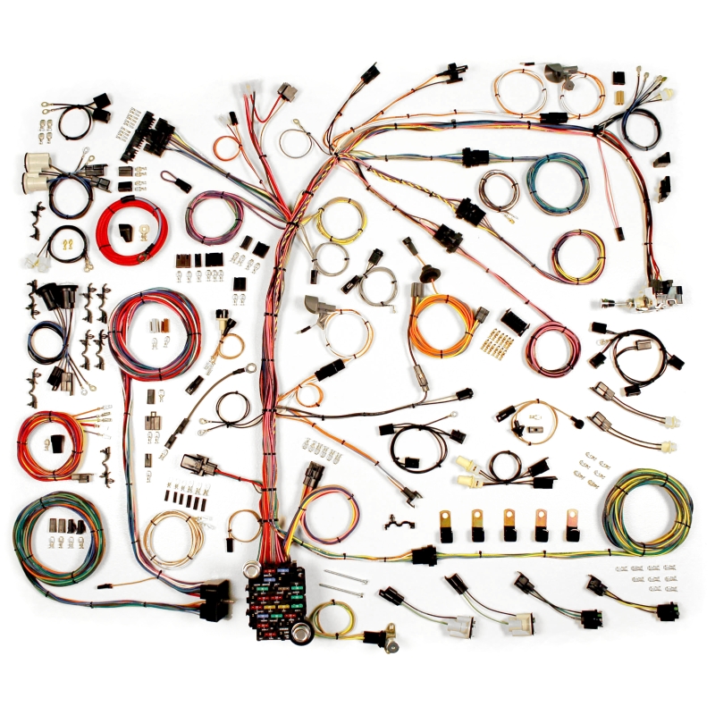Working with major equipment manufacturers such as Autometer (TM), Classic Industries (TM), Dakota Digital (TM), Stewart Warner (TM) and VDO (TM) gauge systems, Raingear (TM) wiper systems, Hot Rod Air (TM) and Vintage Air (TM) heat and air conditioning systems, Flaming River (TM), and Ididit (TM) (just to name a few), we have engineered a kit that easily interfaces with aftermarket accessories as well as reproduced original taillight, headlight, and running light assemblies. In keeping with the design of this kit, there is still complete flexibility in engine compartment and body wire routing for the custom touch. As with every Classic Update Series (TM) kit, only the best components and detailed installation instructions are utilized in building this most complete kit offered.