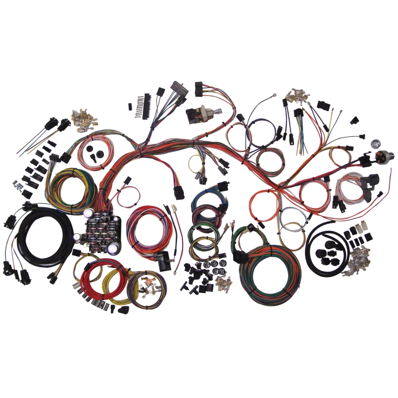 Working with major equipment manufacturers such as Autometer (TM), Classic Industries (TM), Dakota Digital (TM), Stewart Warner (TM) and VDO (TM) gauge systems, Raingear (TM) wiper systems, Hot Rod Air (TM) and Vintage Air (TM) heat and air conditioning systems, Flaming River (TM), and Ididit (TM) (just to name a few), we have engineered a kit that easily interfaces with aftermarket accessories as well as reproduced original taillight, headlight, and running light assemblies. In keeping with the design of this kit, there is still complete flexibility in engine compartment and body wire routing for the custom touch. As with every Classic Update Series (TM) kit, only the best components and detailed installation instructions are utilized in building this most complete kit offered.