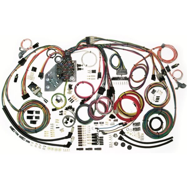 Working with major equipment manufacturers such as Autometer (TM), Classic Industries (TM), Dakota Digital (TM), Stewart Warner (TM) and VDO (TM) gauge systems, Raingear (TM) wiper systems, Hot Rod Air (TM) and Vintage Air (TM) heat and air conditioning systems, Flaming River (TM), and Ididit (TM) (just to name a few), we have engineered a kit that easily interfaces with aftermarket accessories as well as reproduced original taillight, headlight, and running light assemblies. In keeping with the design of this kit, there is still complete flexibility in engine compartment and body wire routing for the custom touch. As with every Classic Update Series (TM) kit, only the best components and detailed installation instructions are utilized in building this most complete kit offered.