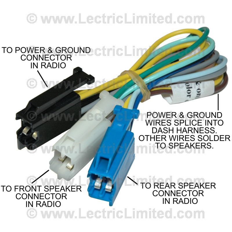 power feed & speaker out for original Delco radio, (includes 3 connectors and pigtails)