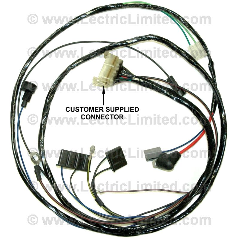 V8, with original 2 wire voltage regulator, without Factory Installed Circ-L-Aire A/C ****CUSTOMER MUST SUPPLY A DONOR HARNESS WITH A USABLE BULKHEAD CONNECTOR. PHONE-IN ORDER ONLY; PLEASE DO NOT ORDER THIS ITEM ONLINE.****