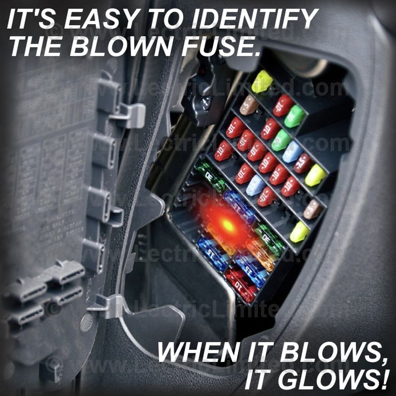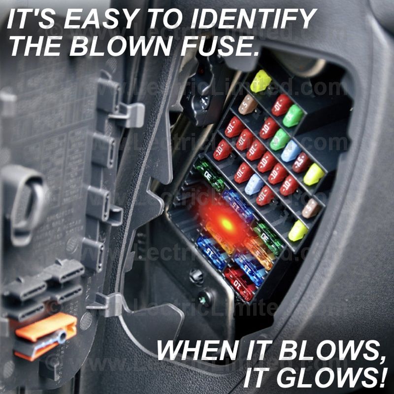 ATM “mini” blade, 7 pc. fuse set with integrated red LED fault indicator on top of fuses. LED glows brightly when fuse is blown. Eliminates the guess work and speeds location of blown fuses. Color-coded, fast acting & UL approved. 0.43″ wide. Set contains one of (5A, 7.5A, 10A, 15A, 20A, 30A). Primarily used on vehicles built after mid 1990s.