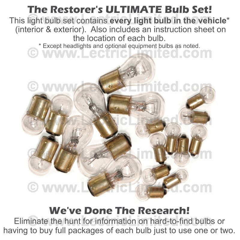 The restorer’s “ULTIMATE” bulb kit. It replaces all the interior and exterior light bulbs (except headlights).