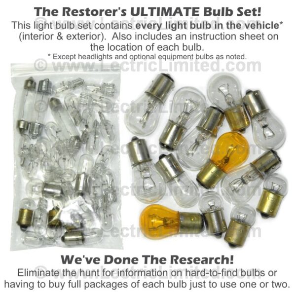 The restorer’s “ULTIMATE” bulb kit. It replaces all the interior and exterior light bulbs (except headlights).